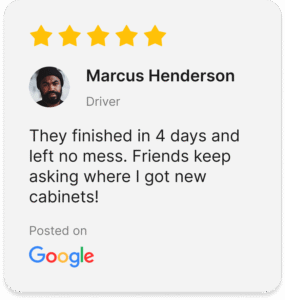Unlike rushed crews, we limit our work to just 2 kitchens per week. That’s how we ensure your cabinets get the time, detail, and finish they deserve — the kind that lasts for years and wows on day one.